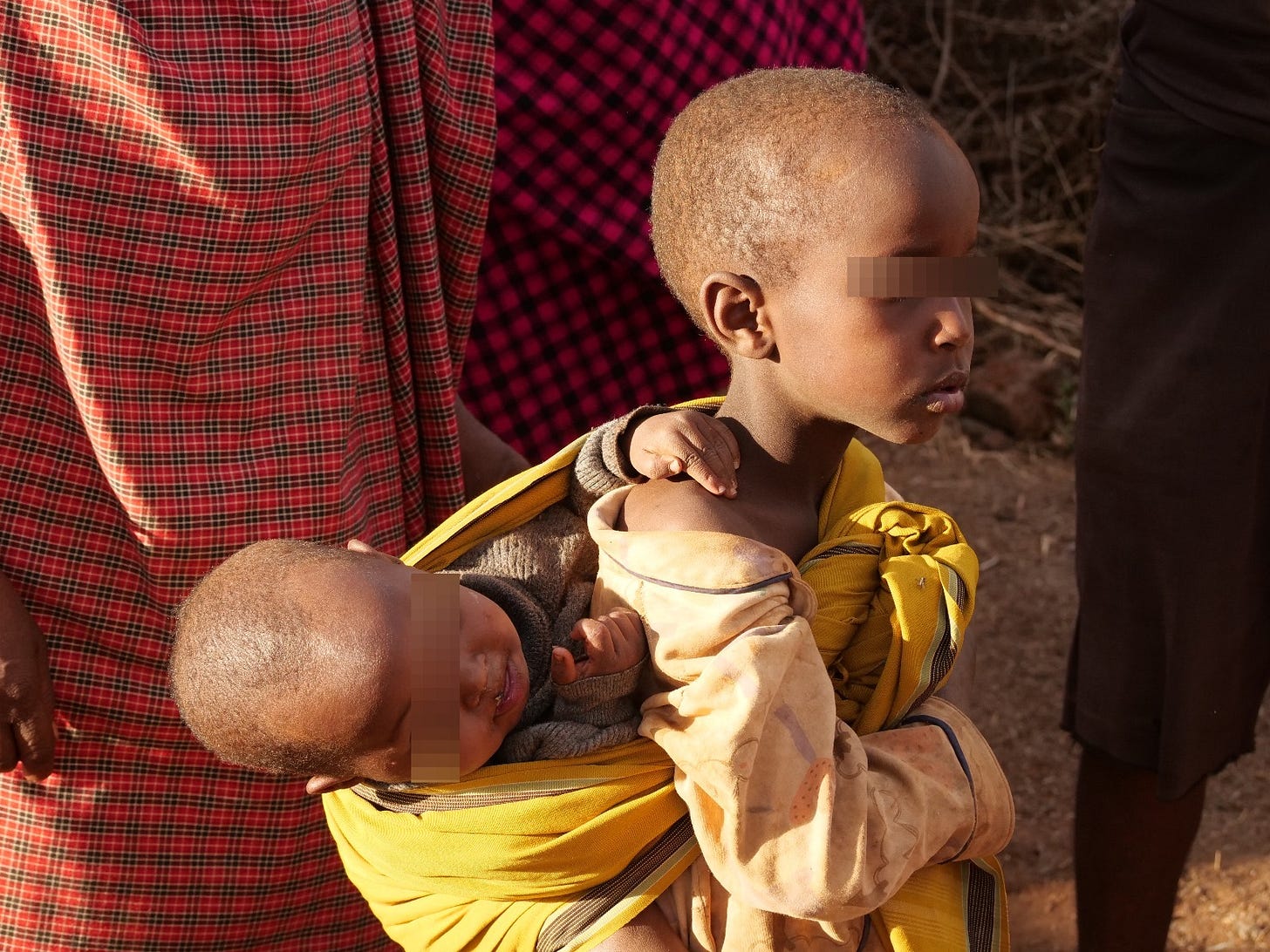 Like in many rural communities in East Africa, Barabaig take some responsibility in caring for anyone younger than them. This young girl is shown carrying her even-younger sibling.