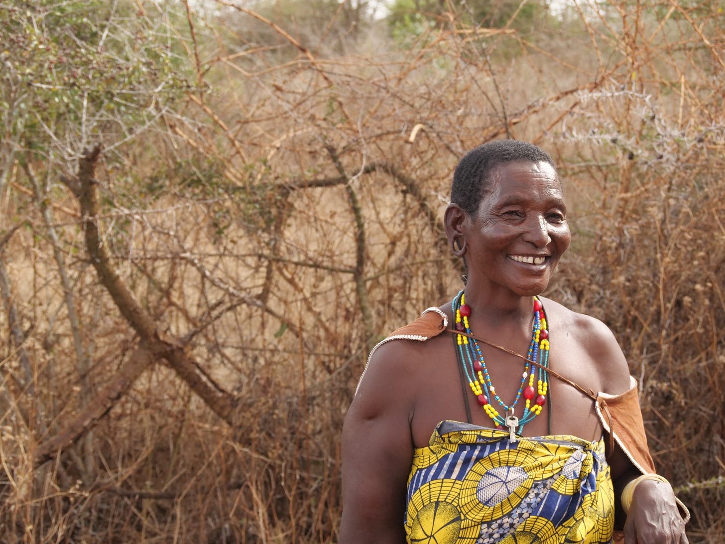 Barabaig women wear colorful patterns and make their own clothes from cow skin. They often wear earrings and other jewelry handmade from beads. I have met this woman — a smallholder farmer who serves in a leadership position amongst her peers — several times, and she always wears her housekey as a necklace so she’ll never lose it. The Barabaig are famed for being skilled blacksmiths, welding knives, jewelry, and other metalworks by hand.